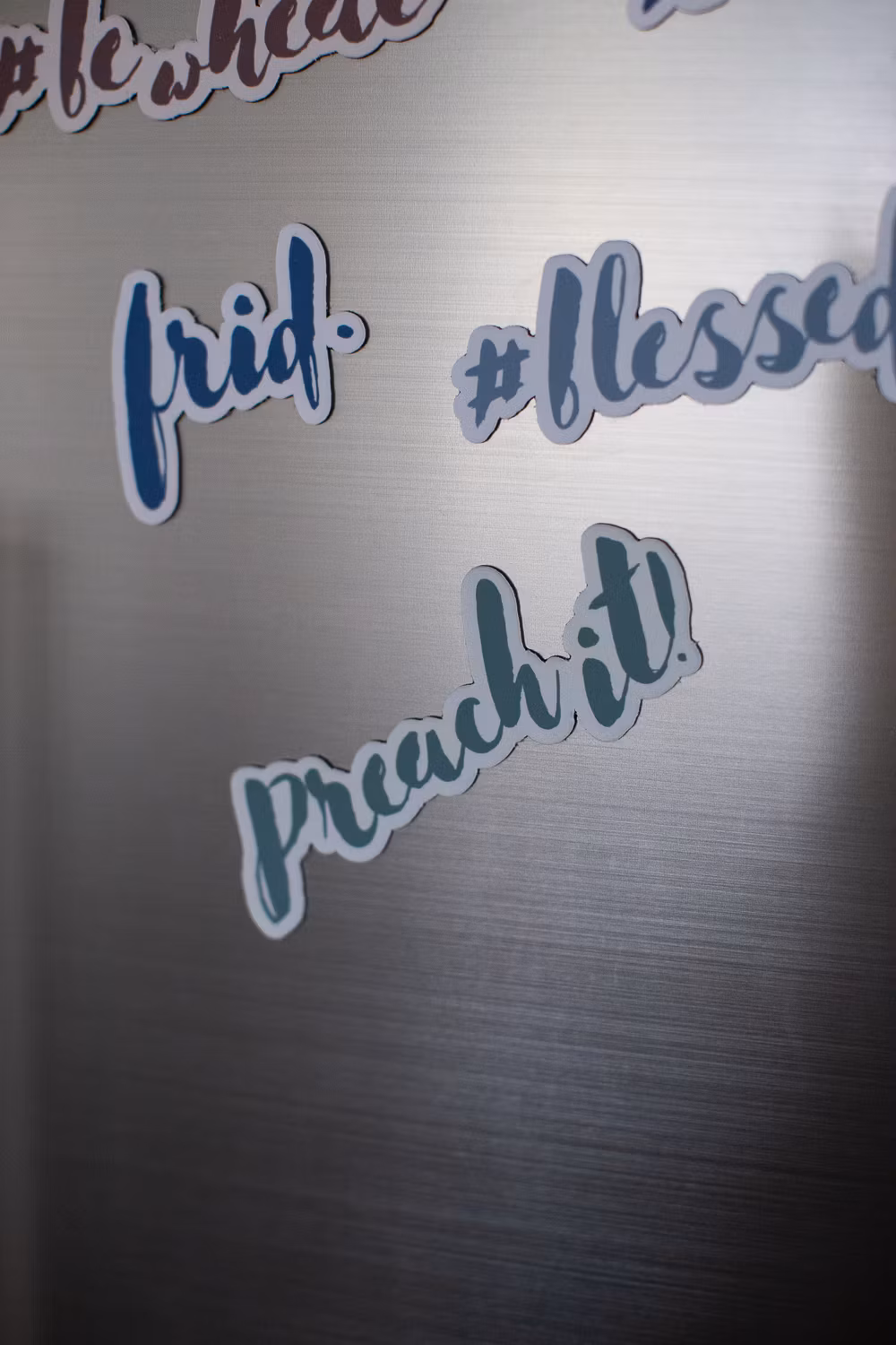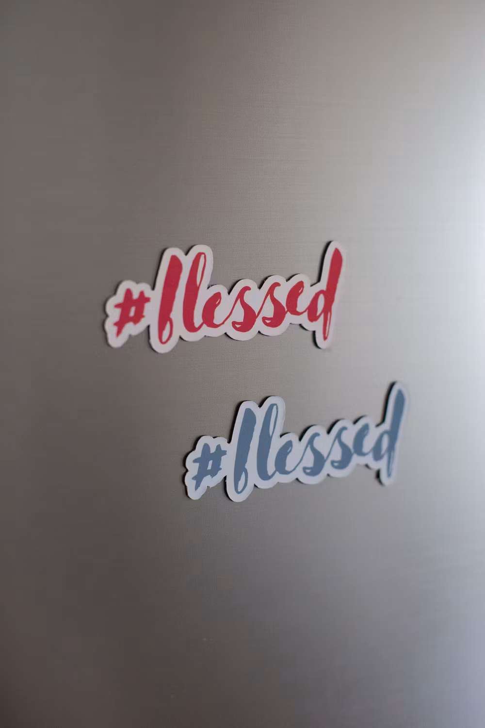 #blessed En magnet att sätta på kylskåpet som påminner om Guds välsignelse och frälsning för den som tror på evangeliet; att Jesus dog för oss.