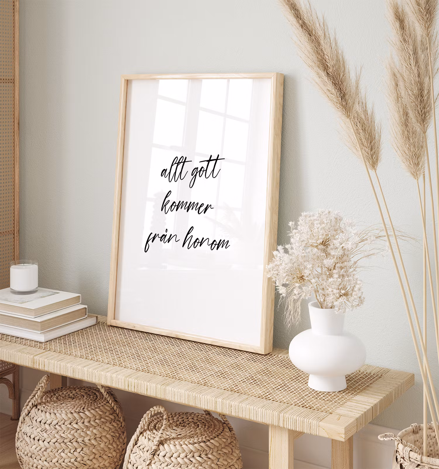 Eftersom ramen inte ingår i köpet behöver du köpa till en ram. Storlekarna är alla standard som går enkelt att hitta där ramar säljs. Den här printen passar extra bra i en svart eller träfärgad ram.