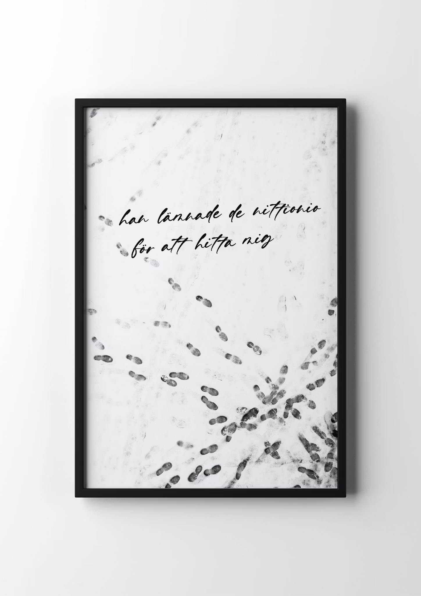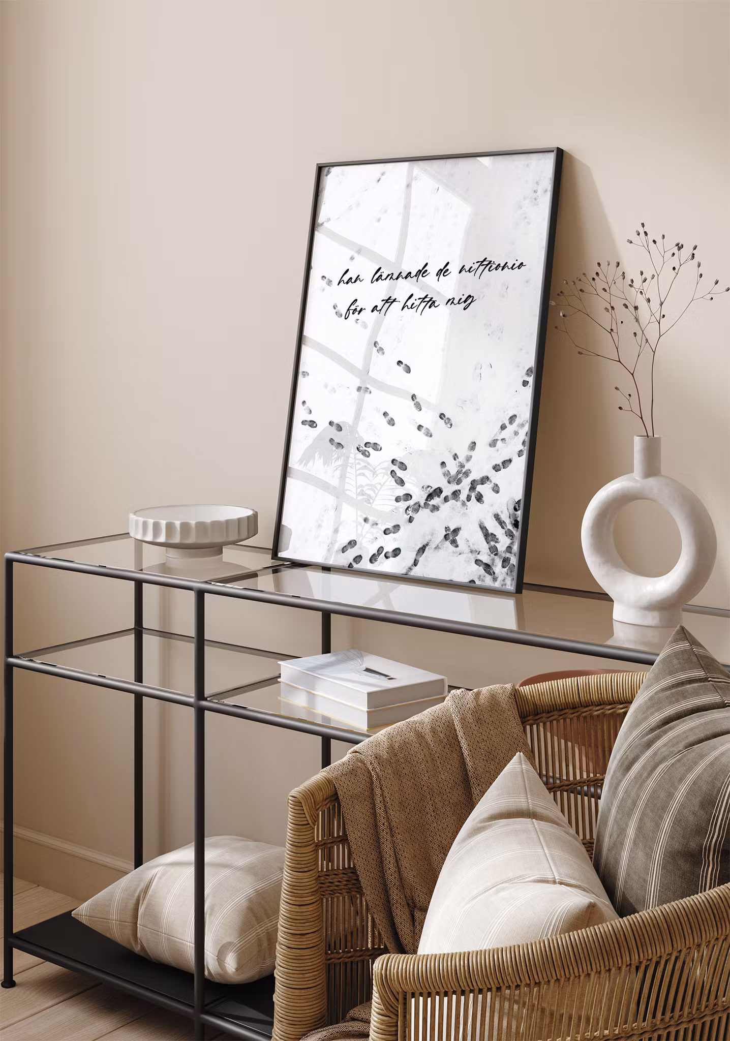Eftersom ramen inte ingår i köpet behöver du köpa till en ram. Storlekarna är alla standard som går enkelt att hitta där ramar säljs. Den här printen tycker vi gör sig extra fin i en svart ram som på bilden, men den är också vacker i en träram för ett mer livfullt uttryck.