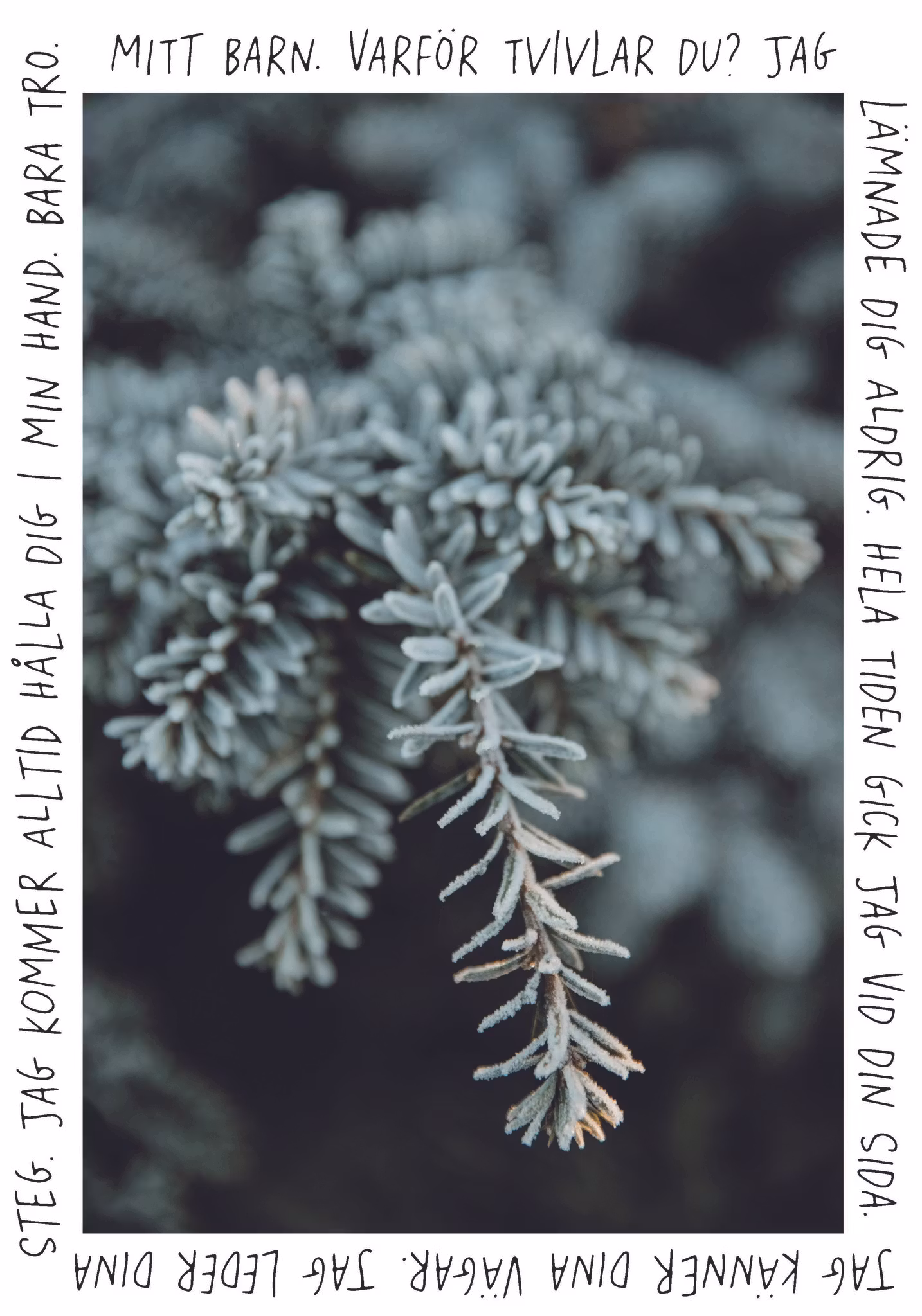 "Mitt barn. Varför tvivlar du? Jag lämnade dig aldrig. Hela tiden gick jag vid din sida. Jag känner dina vägar. Jag leder dina steg. Jag kommer alltid hålla dig