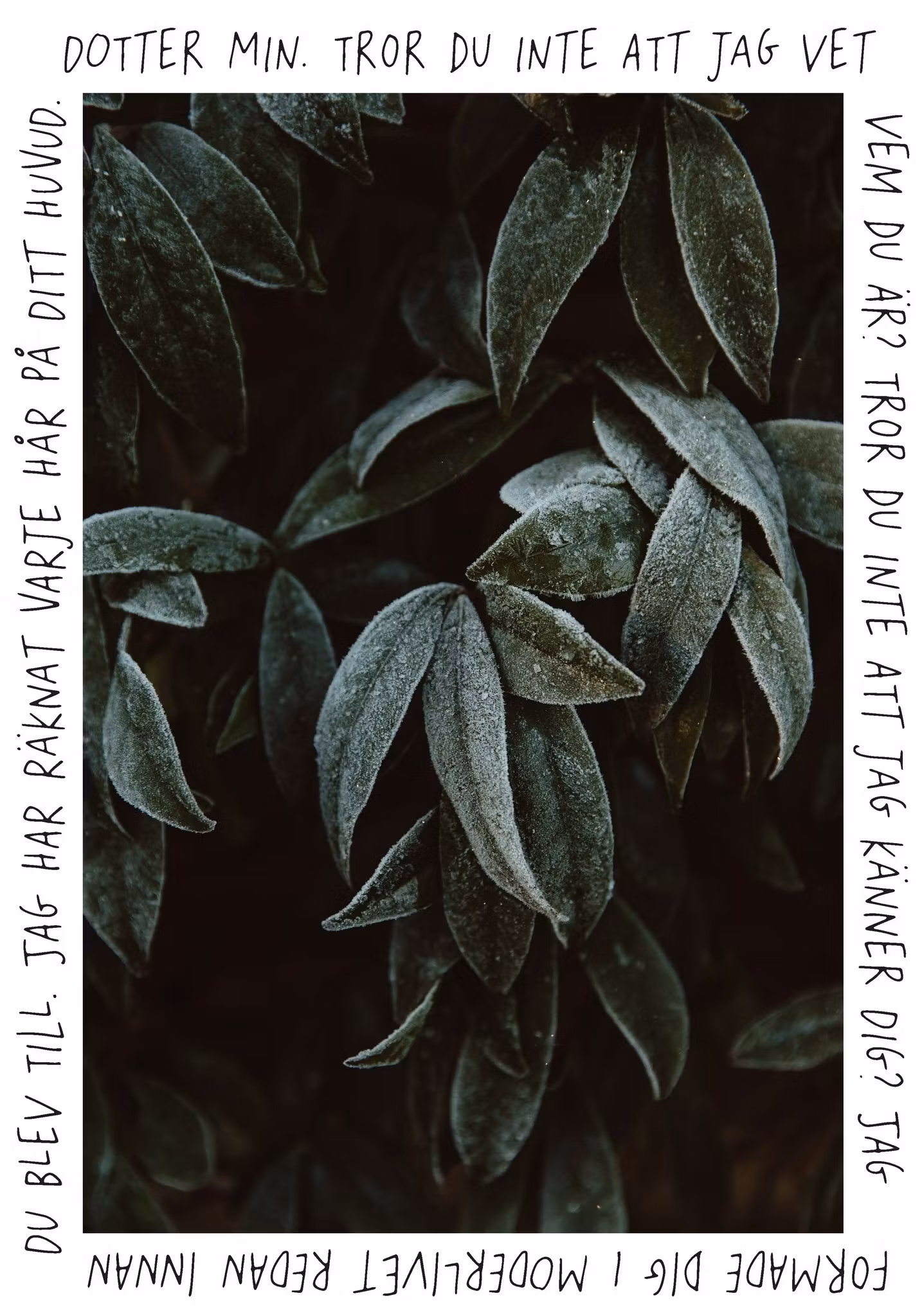 "Dotter min. Tror du inte att jag vet vem du är? Tror du inte att jag känner dig? Jag formade dig i moderlivet redan innan du blev till. Jag har räknat varje hår på ditt huvud."