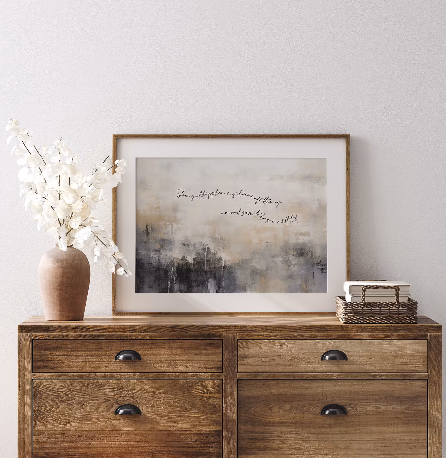 Eftersom ramen inte ingår i köpet behöver du köpa till en ram. Storlekarna är alla standard som går enkelt att hitta där ramar säljs. Den här printen tycker vi gör sig extra uttrycksfull i en ekram, eller varför inte en tunn guldram.